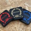 Farben: Schwarz, beige-gold. Format 50x50mm. Mit Hakenklett vernäht und mit Flauschklett