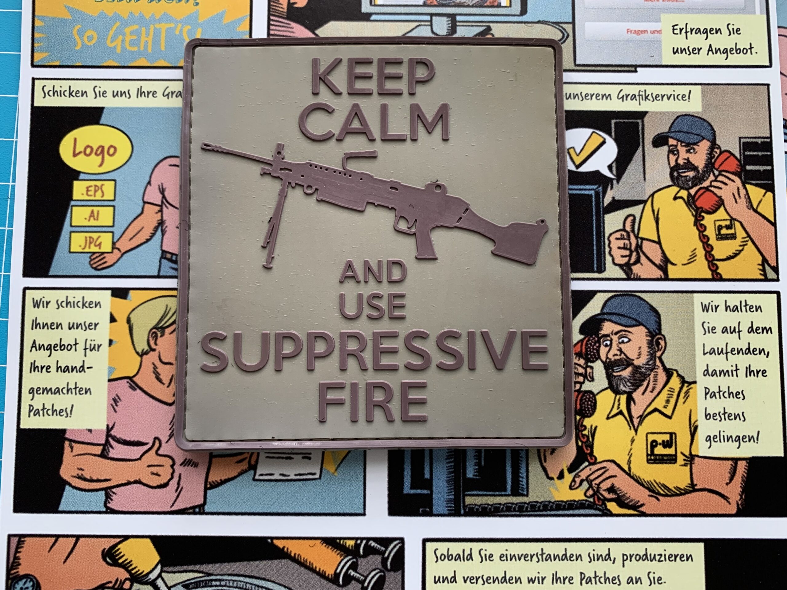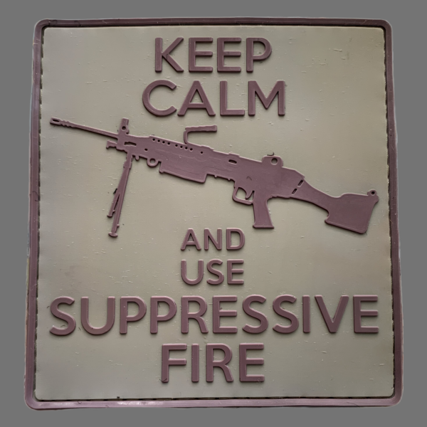 3D Rubber Morale Patch: „KEEP CALM AND USE SUPPRESSIVE FIRE“.