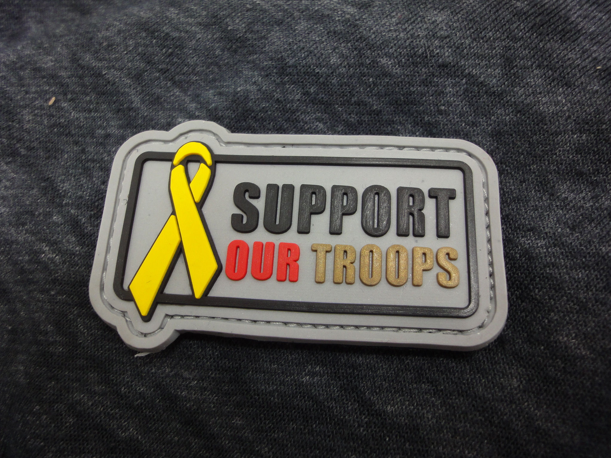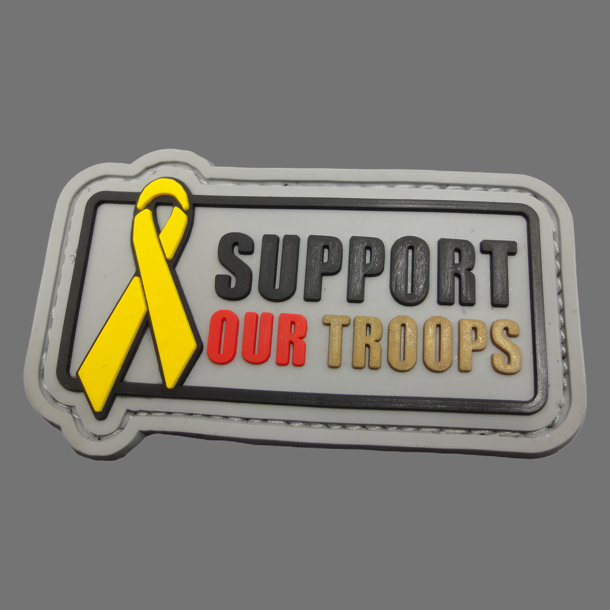 3D Rubber Morale Patch: „SUPPORT OUR TROOPS“ in S,R,G.