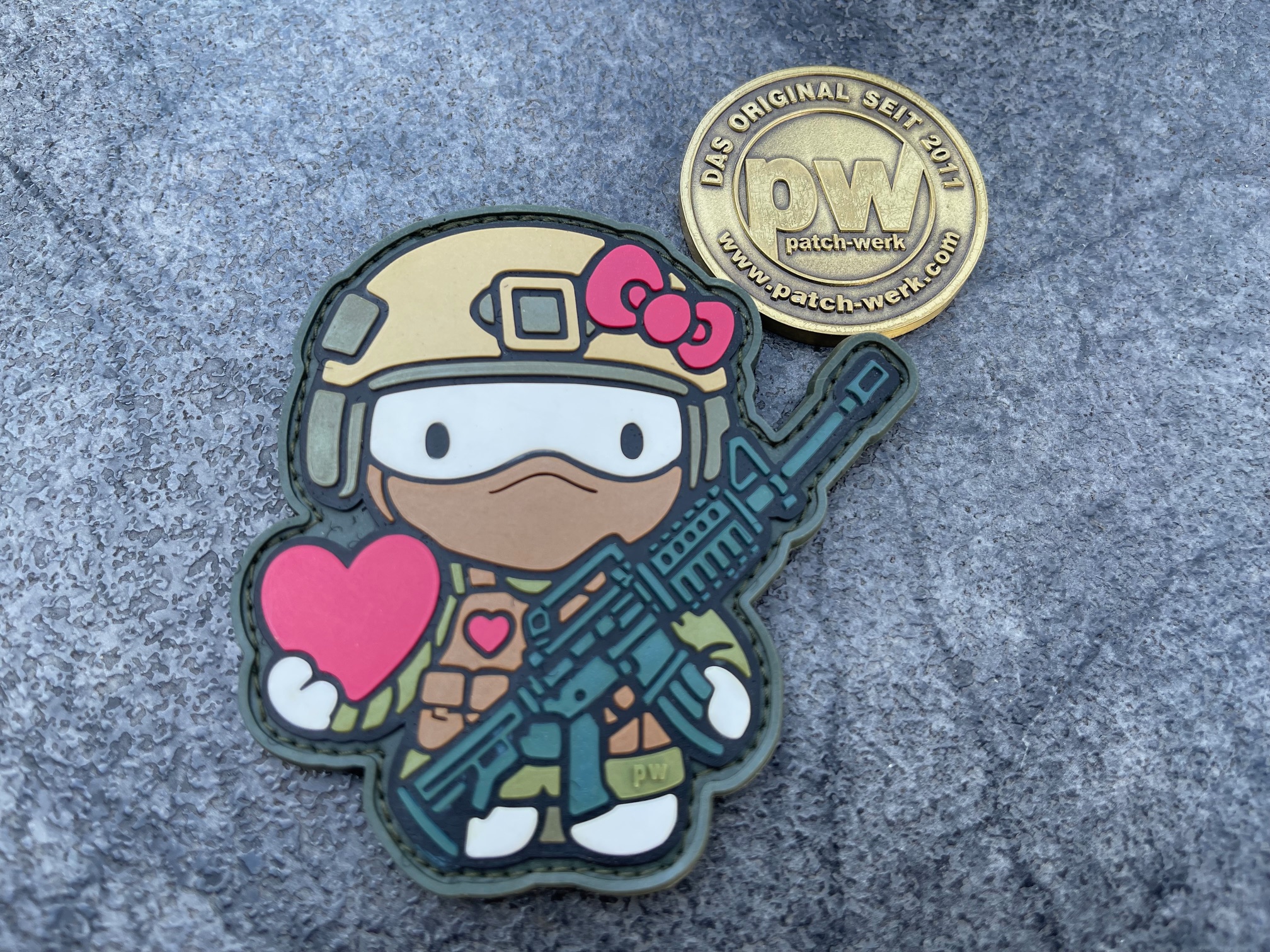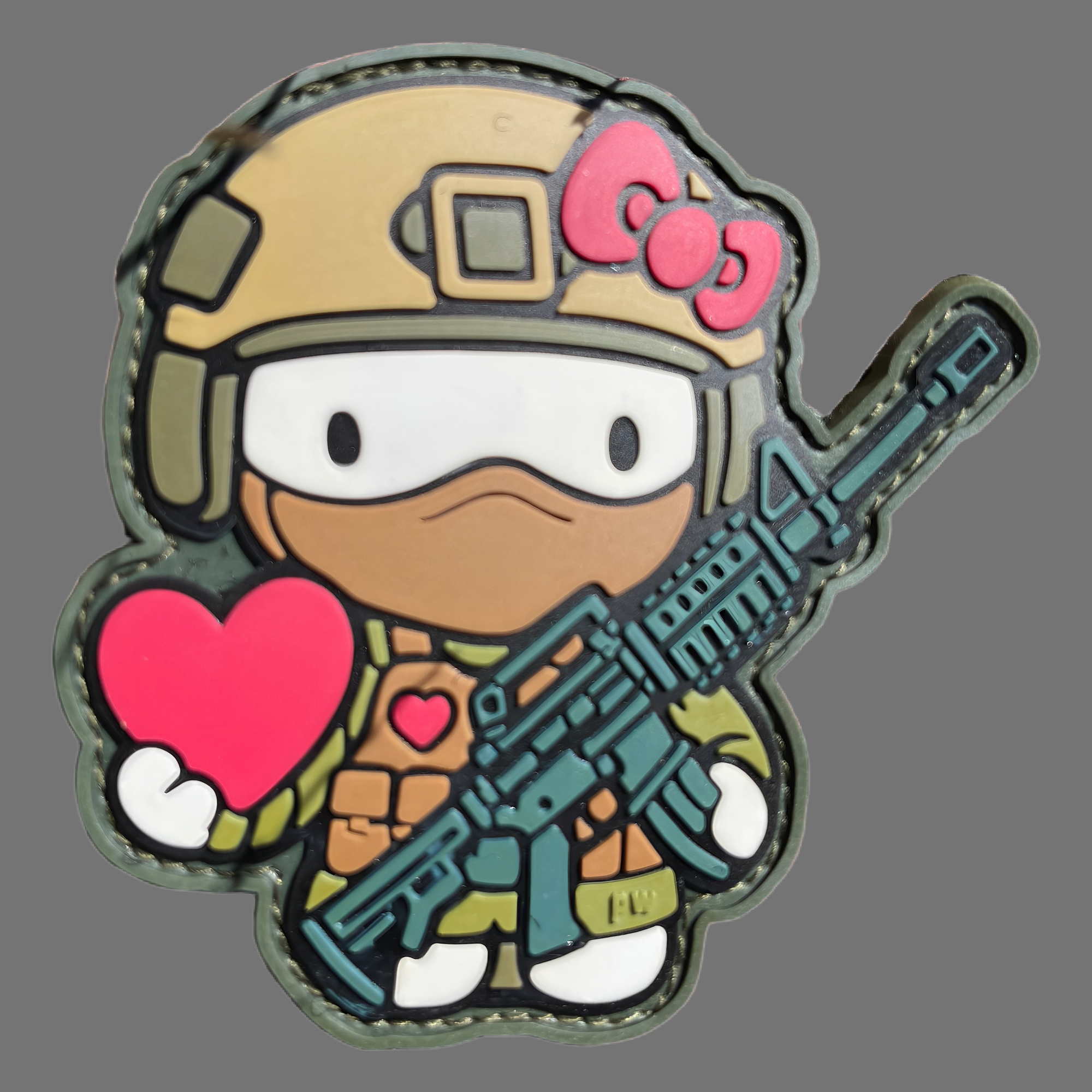 Dieser auffällige Patch kombiniert knallharten Military-Style mit einem süßen Twist!