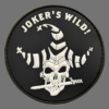 Farben: Schwarz, Dunkelrot. Format: 7cm Höhe x 8,5cm Breite. Mit Hakenklettrückseite und passender Flauschfläche.
